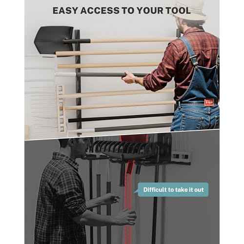 Garage Tool Organizer Wall Mount, Shed Yard Tool Organizer for Garage, Horizontal Organization Tool Racks for Walls, Shovels and Rakes, 3FT