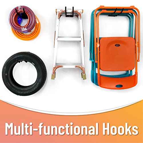 HUHOLE Garage Hooks, Ladder Hangers for Garage Wall, Shovel Holder, 4 Pack Heavy Duty Hook for Ladder, Rake, Folding Chair, Yard Tools, Garden Tool, 12¡± Wave Curved Utility Hooks