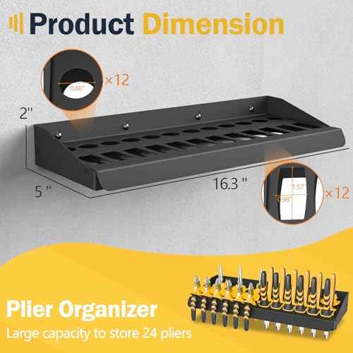 Screwdriver Organizer, 2-Piece Heavy Duty Wall Mount Storage Rack Pliers Organizer, Screw Driver Holders Organizers for Garage, Workshop, Home, Stores Up to 32 Screwdrivers and 24 Pliers