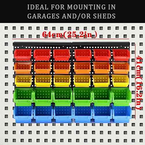 30-Bin Wall Mounted Storage Bins Kit, Tool Organizer Rack, Garage Hardware Organizer, 5 Color Parts Storage Bins, DIY Combination
