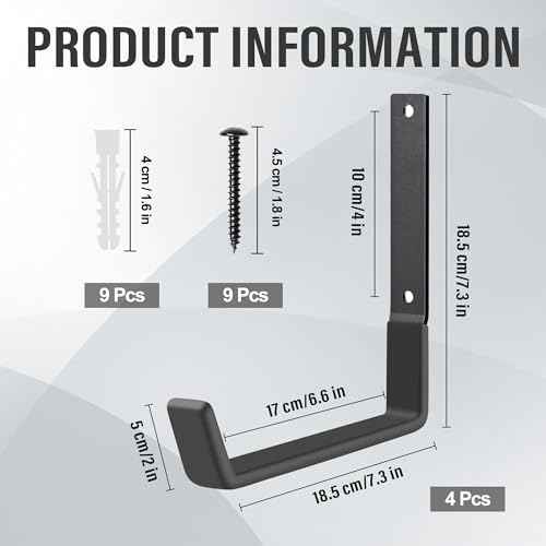 Heavy Duty Utility Hooks, Garage Storage Wall Mount Steel Hooks, Garden Tool Hanger, Garage Organizer for Tool, Ladder, Folding Chair, Hose, Ropes, Bike, etc.(4 Large, 7.7 Inches)