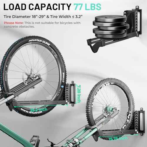 Swivel Bike Rack Wall Mount, Bike Hangers for Garage, Space-Saving Vertical Bike Holder, Holds up to 77 lbs, Bicycle Wall Hanger Storage, No Heavy Lifting Required Indoor Hanging Bike Rack-Black