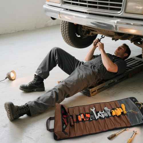WELKINLAND 23-Pocket Canvas Tool Roll, Heavy-Duty Tool Wrap Roll, Waterproof Canvas Roll Up Tool Bag, 14'' Tool Roll Bag Organizers, Easy-Access Screwdriver Roll Up Pouch