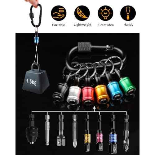Katerk 1/4 Bit Holder Key Chain Cool Gadgets, Drill Bit Holder for Impact Driver, w/Impact Socket Adapter for Drills, 360¡Æ Rotatable and Hex 1/4" 3/8" 1/2" Drill Socket Adapter for Automotive DIY