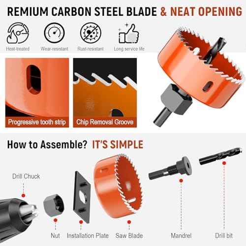 11-Piece Hole Saw Kit (1-1/4" to 3" / 32-76mm) with Mandrels, Arbor, Gloves & Case for Soft Wood, PVC Board, Plywood