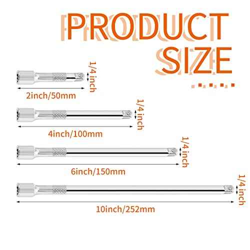4Pcs Drive Socket Extension Set (Cr-V) Steel Socket Extension Set with Mirror Finish (Length Includes 2"/50mm, 4"/100mm, 6"/150mm, 10"/252mm)