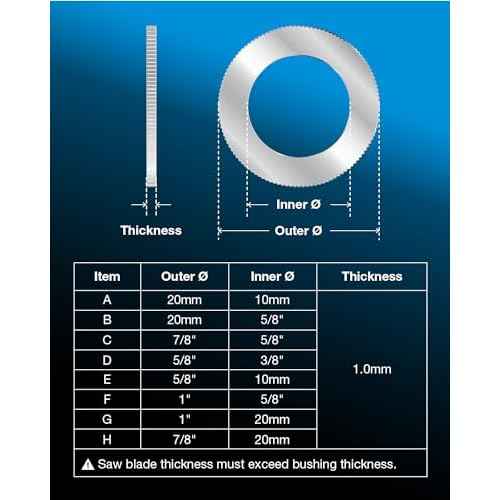 CRALY Saw Blade Bushing Set, Arbor Adapter Kit, Reduction Ring Combo, 1''-20mm, 1''-5/8'', 7/8''-20mm, 7/8''-5/8'', 20mm-5/8'', 20mm-10mm, 5/8''-10mm, 5/8''-3/8'', 16-Pack(BU-08-16A)