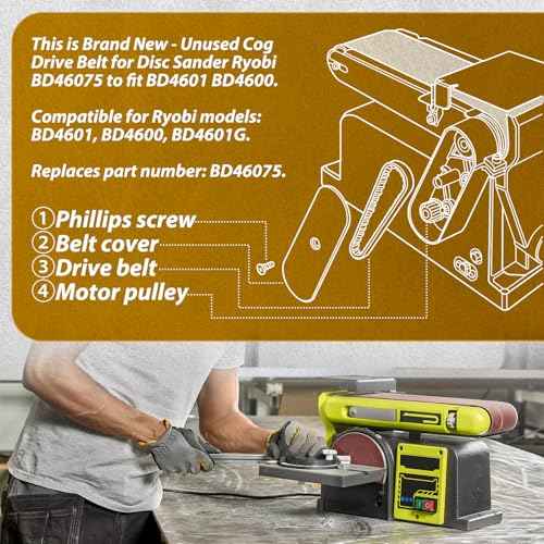HASMX Cog Drive Belt Replacement Drive Belt for Disc Sander Ryobi Models BD4601, BD4600, BD4601G Replaces Part Number BD46075 (2-Pack)