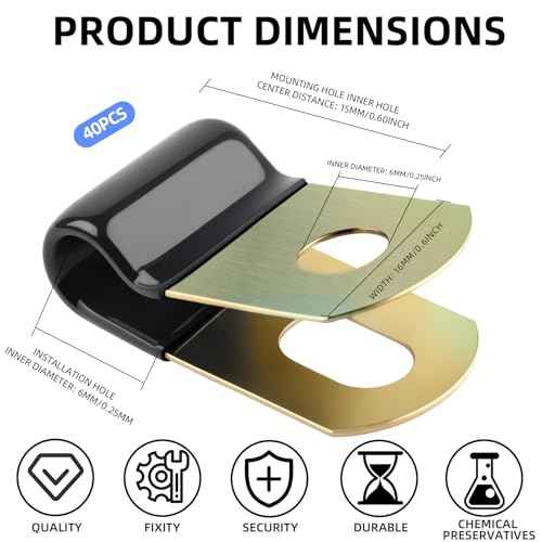 40 Pack Cable Clamps Galvanized Steel 1/4 Hose Clamp Metal Clamp Rubber Cushioned Insulated P Clamps Tube Holder for Tube, Pipe or Wire Cord Installation