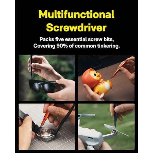 HOTO 5 in 1 Multitool Mini Screwdriver Set, Lightweight Pocket Screwdriver for Eyeglasses & Electronics, Magnetic Bits, Compact EDC Precision Set for Portable Repairs (SILVER)