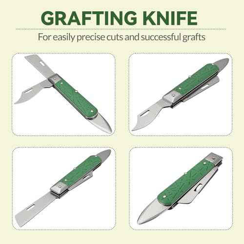 Grafting Knife, COMKIT Professional Foldable Double Blades Graft Knife, Fruit Trees Gardening Grafting Cutting Seedling Budding Tool with Bark Lifter