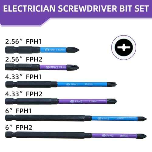 Electrician Impact Screwdriver Bit Set, 1/4¡± Hex-Shank S2 Steel FPH1 & FPH2 Screwdriver Bit Set for Electricians, 6PCS Phillips Cross Slot Head Screw Driver Drill Bits with Magnetism