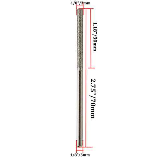 Diamond Burr Bits Cylinder Shape Carving Bits 1/8" Head Dia 1/8" Shank Dia Grinding Burr for Stone, Glass, Ceramic -10pcs