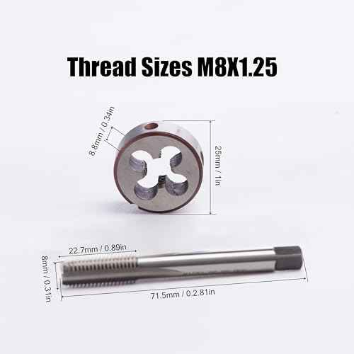 M8 x 1.25mm Metric Tap and Die Set, M8 x 1.25mm High-Speed Steel Machine Round Tap Die Set, Right Hand Thread Tap and Round Thread Die Tool