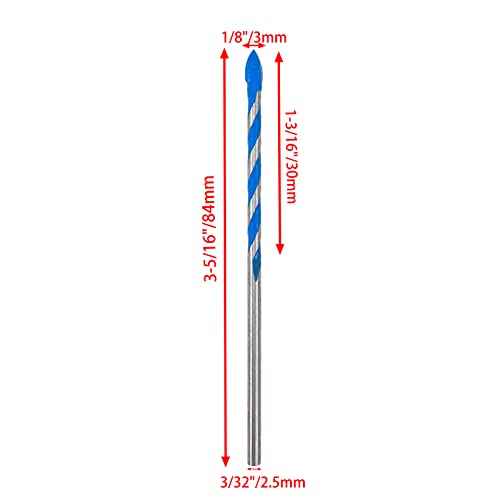 10pcs Masonry Drill Bit Set 1/8" Drilling Dia Carbide Drill Bit for Glass, Tile and Ceramic