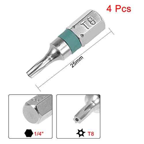 uxcell 4pcs 25mm Long 1/4" Hex Shank T8 Security Torx High Quantity Screwdriver Bits S2 High Alloy Steel