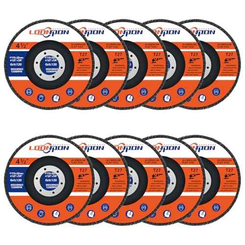 LOONPON Flap Discs 4 1/2 inch for Angle Grinder, Type 27 Zirconia Alumina Cut Off Wheels 4.5 inch 120 Grit, 7/8" Arbor Grinding Wheel, Heavy Duty Flap Wheel for Wood & Metal Sanding (10Pcs)