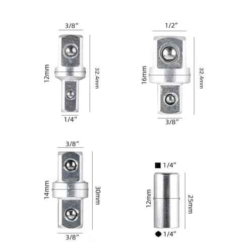 4pcs 1/2",1/4" and 3/8" Square Drive Adapters,Double-head External Square Internal Hexagonal Connector Electric Wrench for Head Outer Square Electric Wrench Extension Rod