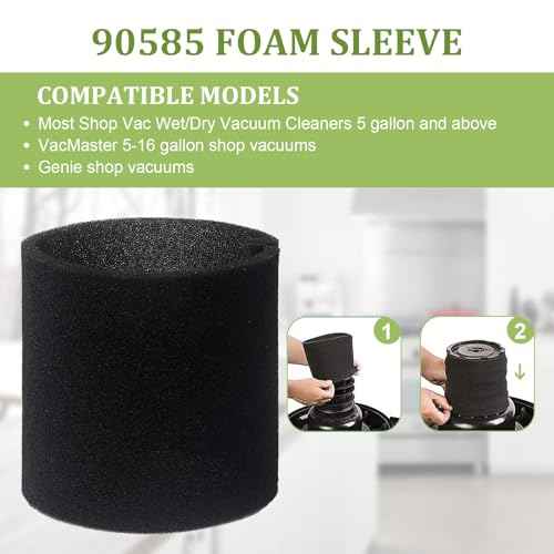 90585 Foam Sleeve Filter Replacement Compatible with Shop-Vac, Vacmaster & Genie Shop Vacuum Cleaner, VF2001 Foam Replacements Filters for Wet Dry Vacuum Cleaner (3 Pack)