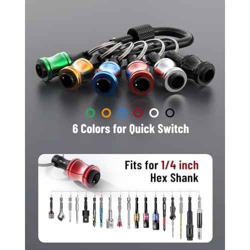 Katerk Bit holder Keychain Light-weight Extra 2 Black Carabiners Portable 6 pcs 1/4 inch Hex Shank Drill Screw Adapter Quick-change Screwdriver Electrician