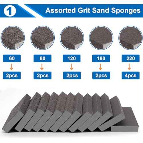smseace 12 Pack Sanding Blocks 60 80 120 180 220 Grit Drywall Sanding Block Sand Paper for Wood Furniture,Drywall,Metal,Crafts Sanding Block Set Sanding Sponge