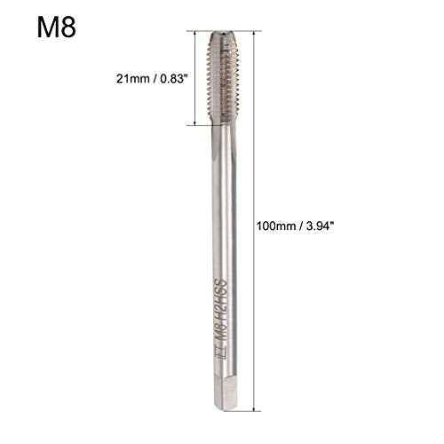 uxcell Metric Thread Tap M8 x 1.25 H2 100mm Extra Long Straight Flute Screw Thread Milling Machine Taps Threading Tapping Repair Tool