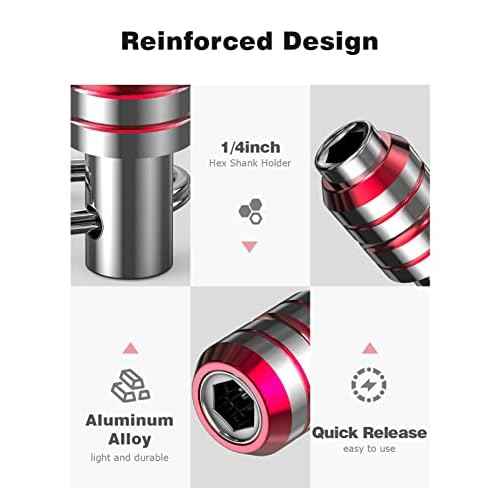 Bit Holder, 1/4inch Drill Bit Holder Keychain for Impact Driver Pull Back to Unlock Quick Change Magnetic Screwdriver Bit Holders-5Pcs