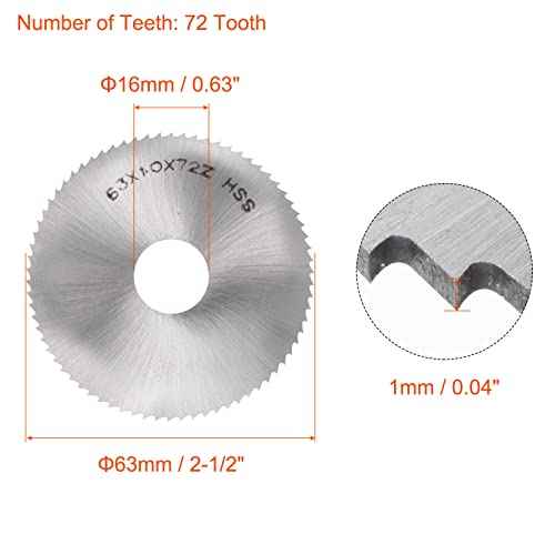 uxcell Circular Saw Blade, 63mm (2-1/2") Dia 1mm Thick 72 Tooth, 6542 High Speed Steel (HSS) Milling Cutter with 16mm Arbor for Wood PVC Aluminum Cutting