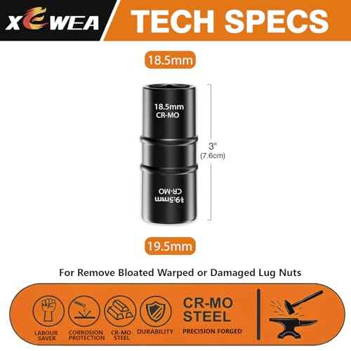 XEWEA 1/2 Inch Drive 18.5mm x 19.5mm Thin Wall Impact Flip Socket, Lug Nut Impact Socket Set Double Ended Thin Wall Nut Sockets CR-MO Twist Removal Tool for Stripped Rusted Bolts