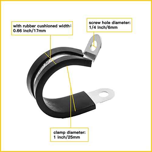 12pcs 1 inch (25mm) Cable Clamps, Stainless Steel Wire Clamps, Rubber Cushioned Insulated Clamp Metal Conduit Clamp for Pipes, Tubes, Hose, Wiring, Cables