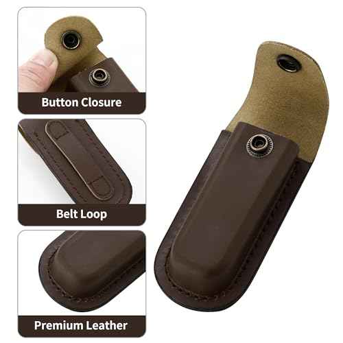 Leather Pocket Knife Sheath, 4'' Pocket Knife Pouch, Folding Knife Belt Sheath with Snap Closure and Vertical Carry Belt Loop, Knife Holster for Outdoor or Daily Use, Medium Size, Brown