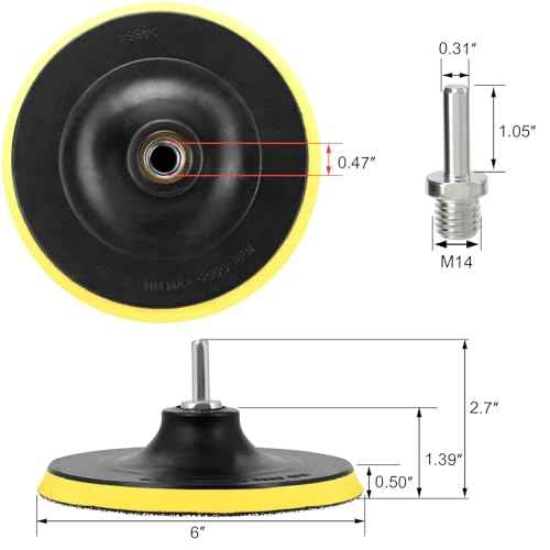 6 Inch(150mm) Hook and Loop Buffing Pad for Sanding Discs, Rotary Backing Pad with M14 Drill Attachment Adapter and Soft Foam Layer