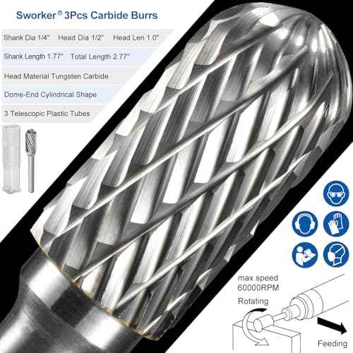 3Pcs 1/4 Carbide Burr Set 1/4" Shank Head Dia 1/2" Dome-End Cylinder Die Grinder Bits Rotary Tools Attachment Kit Rasp Accessories Metal Wood Stone Steel Grinding Deburring Cutting Porting