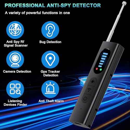 Hidden Camera Detectors, Spy Camera Finder, Portable Hidden Bug and Camera Detector, 5 Levels Sensitivity 6 Modes, Wireless Rechargeable for Home, Car, Hotel, Travel, 1 Pack, Full