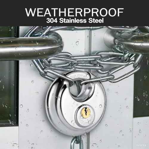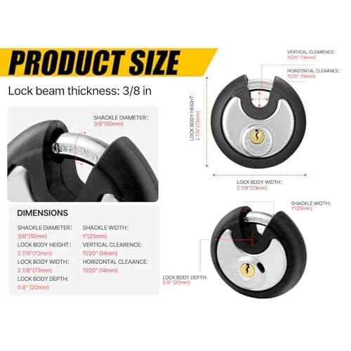 DAYGOS Outdoor Padlock for Storage Unit, Waterproof Stainless Steel Disc Lock with Rubber Bumper for Sheds,Gate and Fence, Heavy Duty Discus Keyed Pad Lock (3/8-Inch Shackle)