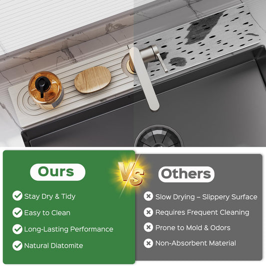 24 Inch Stone Faucet Mat for Kitchen Sink Splash Guard - Diatomite Quick Dry Stone Mat Kitchen Sink Protectors, Water-Absorbent Faucet Handle Drip Tray(White, 23.6" x 3.9")