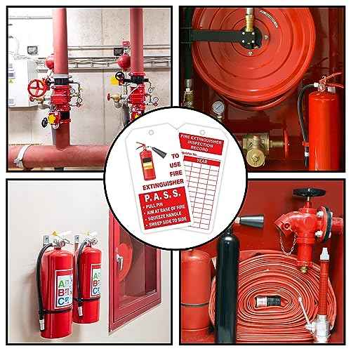 160 Sets Fire Extinguisher Tags with Adjustable Wire Ties Monthly Inspection Record Tags for Indoor Outdoor 4.2 x 2.1 Inch