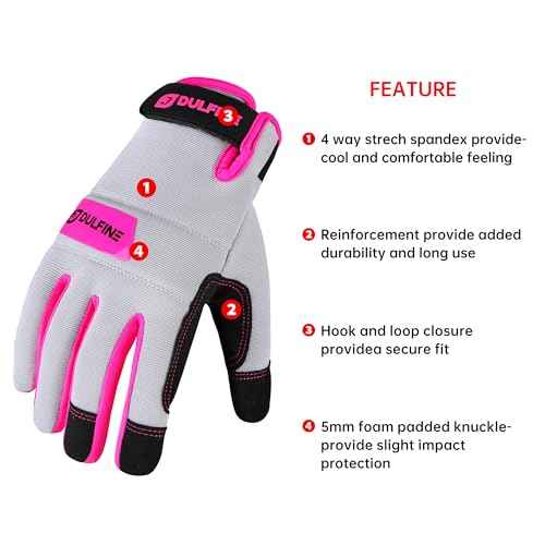 DULFINE Work Gloves for Women,Flexible Breathable Fit-Padded Knuckles & Palm,Touch Screen,Ideal for Gardening Yardwork Warehouse