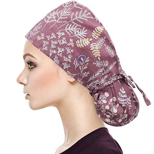 QBA Adjustable Working Cap with Button, Satin-Lined Hat, Cotton Working Hat Sweatband, Elastic Tie Back Hats Unisex