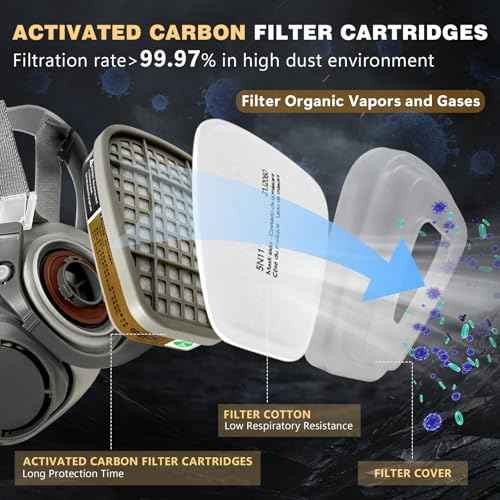 Respirator Cartridge/Filter, 6001 Filter Cartridges Installed on 6200, 6800 Respirator Body, Use for Asbestos, Resin, Paint, Dust, Welding