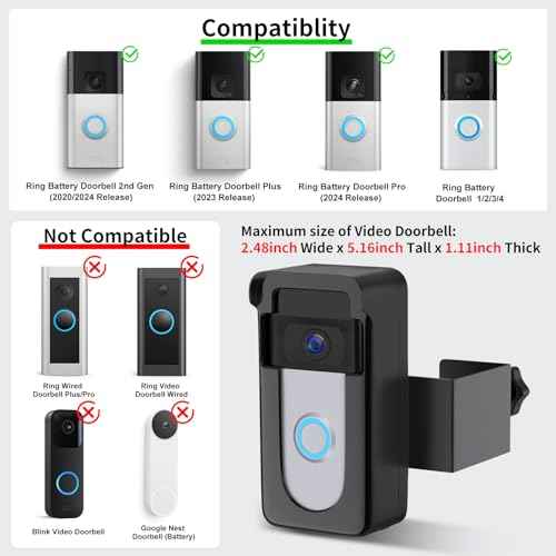 Anti-Theft Doorbell Camera Mount Compatible with Ring Battery Doorbell 2nd Gen (2020/2024 Release), 1/2/3 Plus/3/4/Battery Doorbell Plus/Pro, No Drill Camera Door Mount Holder for Houses, Rentals