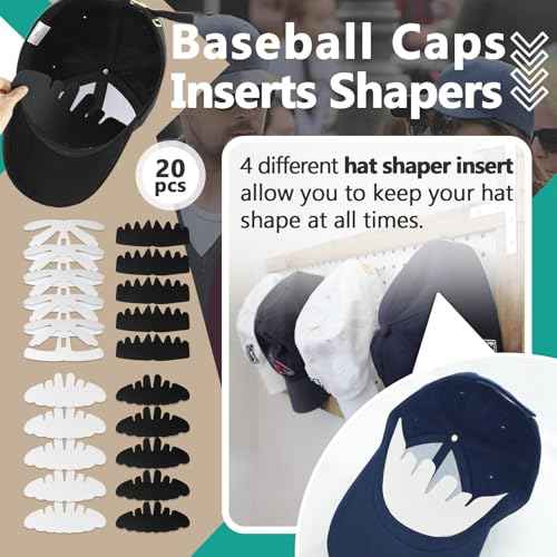 20Pcs Hat Shaper Insert - Baseball Caps Inserts Shapers - 4 Design Hat Shapers for Caps, Reusable Crown Support Brim Cap - 2 Colors Hat Insert to Keep Shape for Snapback Cap, Ball Sports Hat and More