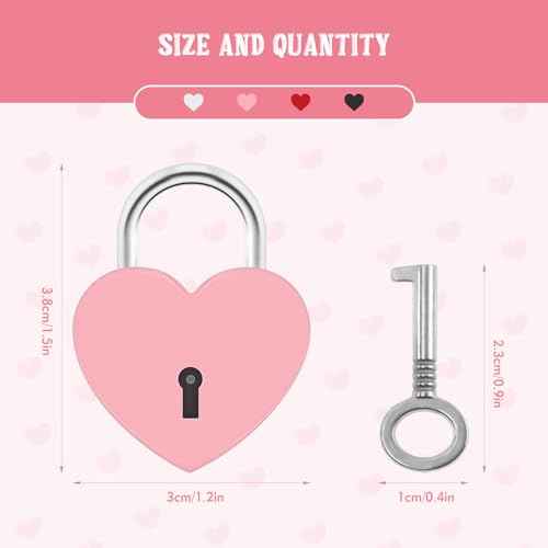 4Pcs Multicolor Mini Heart Locks, Sturdy and Durable Heart Shaped Lock, Cute Diary Lock and Key Set for Schoolbag, Jewelry Box, Suitcase
