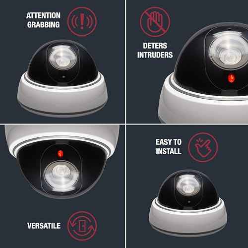 SABRE Fake Dome Security Camera, Flashing Red Light For Nighttime Visibility, Realistic Design Deters Intruders, Battery Operated, No Wiring Required, Fake Dummy Camera, White