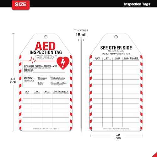 AED Inspection Tags 25 Pack, Waterproof PVC Safety Inspection Record Tags, Tear-Resistant & OSHA Compliant Monthly AED Service Tag Check Cards