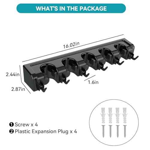 6PCS Broom and Mop Holder, Heavy Duty Garden Tool Organizer Rack Rake and Shovel Handle, Stainless Steel Mop Hanger. Screws for Wall Mounted. Matte Black