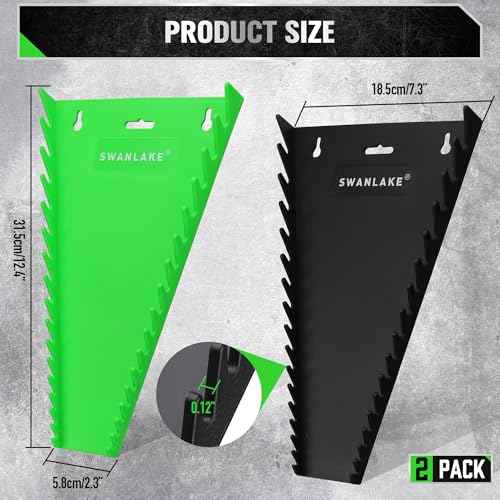 SWANLAKE GARDEN TOOLS Magnetic Wrench Organizer 2-Piece, 32-Slot Drawer Storage, SAE (1/4" to 1-1/16"), Metric (6mm to 24mm), Green and Black