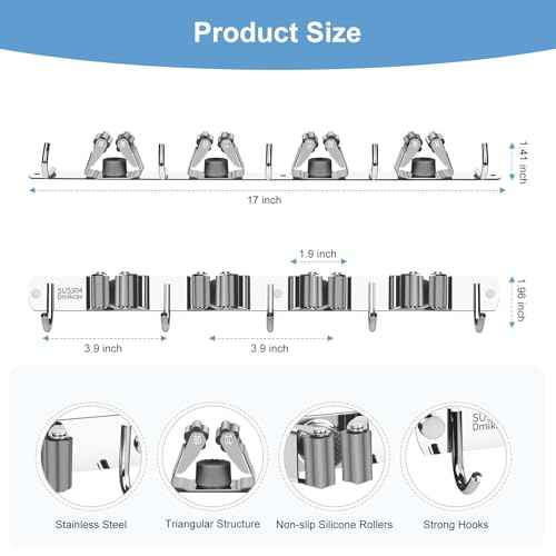 8 PCS Broom Holder Wall Mount, Upgraded Heavy Duty Mop and Broom Holder Wall Mount, Stainless Steel Broom Hanger Mop Holder Rack for Kitchen Laundry Garden Tool Organizer