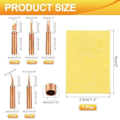 MECCANIXITY 1 Set 900M Soldering Iron Tips Copper Non-magnetic Welding Head with Cleaning Sponge Pad Replacement for Solder Station Tip (I+IS+K+2C+3.2D)