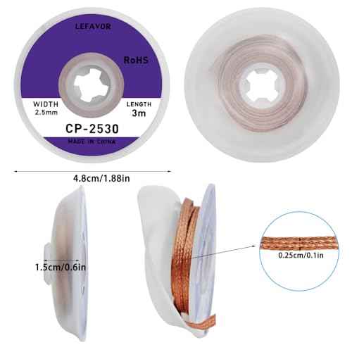 SourceTon 4-Pack Desoldering Wick Braid (10ft x 0.1in) | Copper Solder Remover Tool for Resoldering and Desoldering, Drawing in Excess Solder